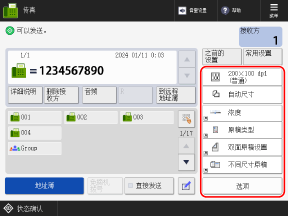 可以按下 [之前的设置] 来调用之前使用的传真发送设置。调用设置时会应用之前的发送接收方。