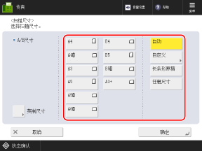 注册常用的原稿尺寸后,可通过按 [已注册尺寸1] 至 [已注册尺寸5] 来调用这些设置。
