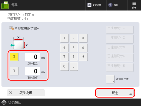 当经常使用特定的非标准尺寸原稿时,可以使用以下步骤注册尺寸。之后便可以在尺寸输入屏幕上调用尺寸,省去每次输入尺寸的麻烦。