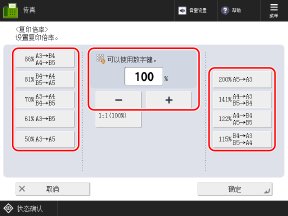 * 如果选择 [任意尺寸],只能将原稿放置在输稿器中,倍率也将固定为 1:1 (100%)。