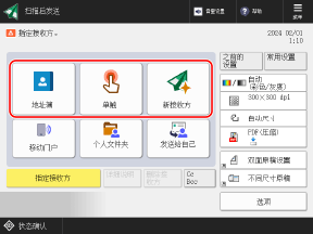 可以按下 [之前的设置] 来调用之前使用的扫描数据发送设置。调用设置时会应用之前的发送接收方。