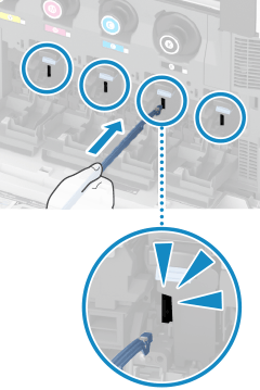 将清洁棒的尖端朝向左侧,将清洁棒的孔与机器前盖板的突出部分对齐,然后将清洁棒向左滑动。