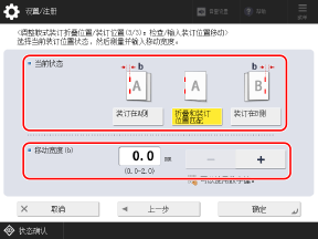 在测试页上检查装订位置的当前状态和偏移宽度,然后选择当前状态并设置偏移宽度。