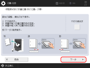 调整鞍式装订折叠位置或装订位置,使其位于纸张中心。打印测试页,在测试页上检查折叠位置的当前状态和偏移宽度,然后进行调整。