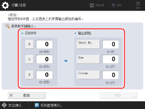 参考步骤 1 中打印的图表,在 [Sheet No.]、[Row] 和 [Column] 中输入要重现颜色的编号。