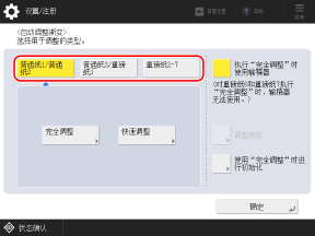 4 中选择的每种纸张类型进行校准。选择 [简单] 时,校准将应用于所有纸张类型,并且校准准确性会降低,但校准所需的时间会缩短。配置该设置需要管理员权限或设备管理员权限。