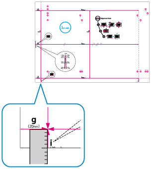 根据要打印的纸张尺寸,“b”、“f”、“h”和“j”指示符可能会打印多次。对最靠近纸张后缘的位置进行调整。
