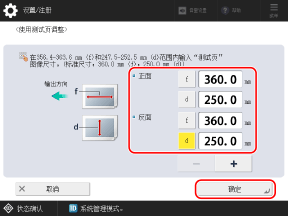 检查纸张边缘与指示符中心线之间的偏移量,输入相应值,然后按下 [确定]。