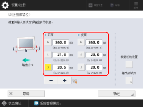示例:如果正面指示符的中心线位于纸张边缘内 0.6 mm 处,则将 [正面] 设置为“-0.6 mm”。