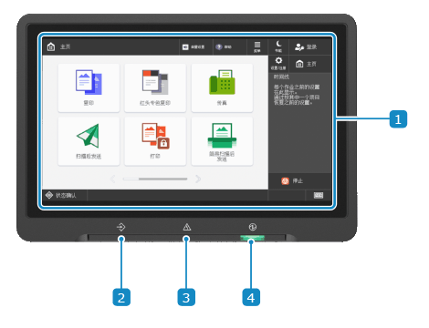 显示操作功能、使用情况、消息和其他信息的屏幕。此触摸面板可以用手指直接触摸屏幕进行操作。