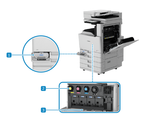当废粉收集容器已满时,请去除旧的废粉收集容器并换上新的。