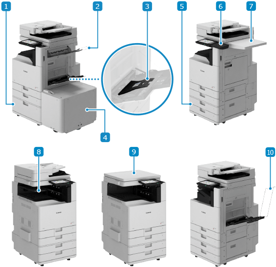 输出打印和复印的纸张。可以使用装订组件和其他分页装订处理功能。