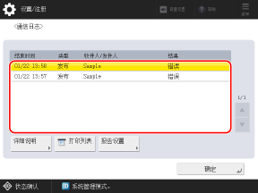 使用控制面板检查设备信息的发送和接收日志。无法在计算机中使用远程用户界面检查设备信息的发送和接收日志。