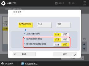在报告上打印原件的第一页时,请将 [含发送图像的报告] 和/或 [含彩色发送图像的报告] 设置为 [打开]。