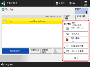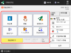 可以按下 [之前的设置] 来调用之前使用的已扫描数据发送设置。还可以将用于发送数据的接收方与设置一起应用。