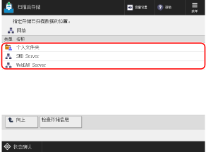 保存目标位置显示在机器的控制面板上,因此可以确认保存目标位置和保存已扫描数据。