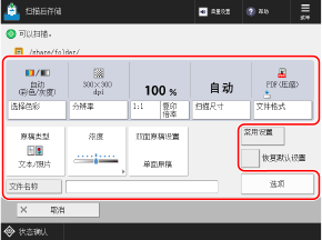 当将已扫描数据保存到 高级存储箱 或 Windows 服务器时,还可以在机器的控制面板上创建目标文件夹并在保存数据前更改文件夹名称。