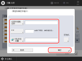 随即显示 [设置/注册保密传真收件箱] 屏幕。