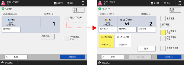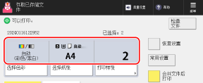 在存储箱的文件选择屏幕上选择一个文件,然后按下 [打印] 可显示打印设置屏幕。