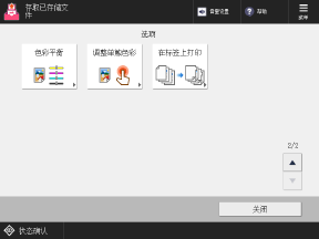 按下此屏幕上的按钮可配置详细的打印设置。配置打印设置后,按下 [关闭] 可返回打印设置屏幕。