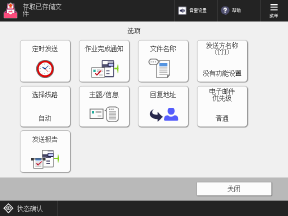 按下此屏幕上的按钮可配置详细的发送设置。配置发送设置后,按下 [关闭] 可返回发送设置屏幕。