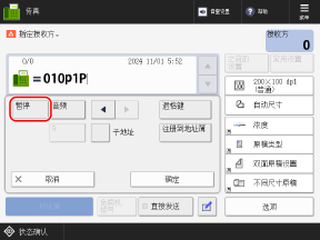 登录到远程用户界面 单击 [设置/注册] [发送] [发送设置-传真设置] 在 [设置暂停时间] 中输入暂停时间 单击 [确定] |