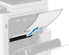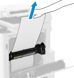 如果纸张边缘已从顶部进入,按照箭头方向缓慢向外拉出纸张,直到边缘出来。