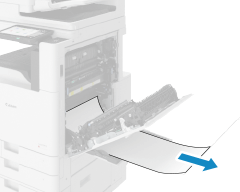 如果纸张卡在多功能托盘中,按照箭头方向轻轻向外拉出。