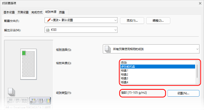 步骤 2:设置纸张尺寸和类型