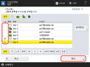 그룹에 등록할 수신인의 확인란을 선택하고 [확인]을 누릅니다.