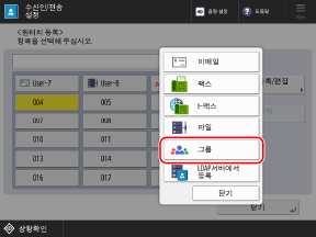 * 확인 화면을 표시하도록 구성된 수신인을 그룹에 등록하면 그룹을 수신인으로 지정하지 못하여 그룹에 데이터를 송신하지 못하게 됩니다.