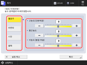 각 농도 영역의 컬러 레벨을 개별적으로 조정(농도 미세조정)