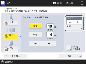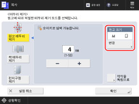 * 원고 선택 화면에 표시되는 크기를 복사할 경우에만 테두리를 제거할 수 있습니다.