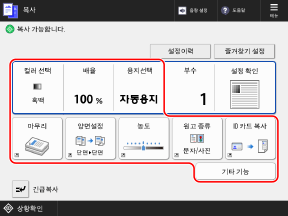 제어판의 [홈] 화면에서 [복사]를 누릅니다.