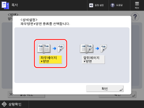 복사 화면[양면] 화면이 표시됩니다.