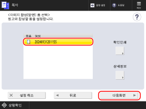 스캔이 완료되면 양식 이미지가 기기에 등록되고 [합성 폼 등록] 화면의 양식 이미지 목록에 표시됩니다.