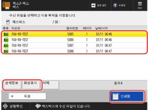 수신된 팩스를 선택하고 [상세정보]를 눌러 팩스 크기 같은 상세정보를 확인합니다.