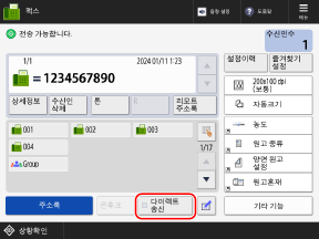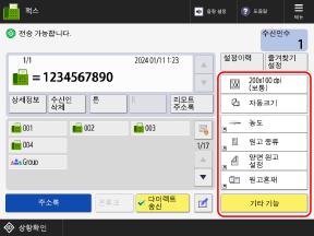 이전에 송신한 팩스의 수신인 설정이 남아 있으면 팩스가 잘못된 수신인으로 송신될 수 있습니다. 설정을 리셋한 후에 작업을 수행하십시오.