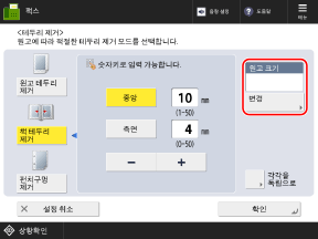 * 원고 크기 선택 화면에 표시되는 크기를 스캔할 경우에만 테두리를 제거할 수 있습니다.