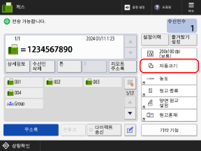 팩스 화면[스캔크기] 화면이 표시됩니다.