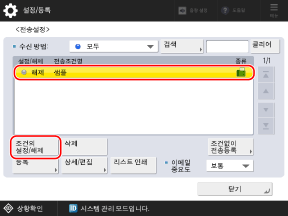등록된 전송 조건을 선택하고 [조건의 설정/해제]를 누릅니다.
