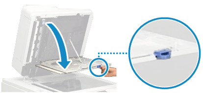 원고대가 긁히지 않도록 주의해서 상단의 파란색 레버를 살살 당기면서 엽니다.