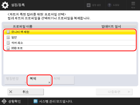 리스트에서 프로파일을 선택하고 [복제]를 누릅니다.