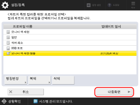 생성된 프로파일을 선택하고 [다음화면]을 누릅니다.