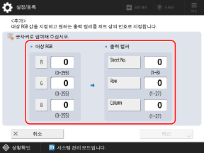 1단계에서 인쇄한 차트를 참조하여, 재현하고자 하는 컬러의 [Sheet No.], [Row], [Column]에 숫자값을 입력합니다.