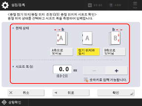 이 조정으로 [후단부 탈색 보정] 및 [화상위치 조정] 설정에 영향이 갈 수 있습니다. 필요에 따라 설정을 다시 조정하십시오.