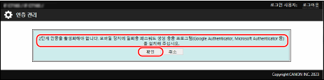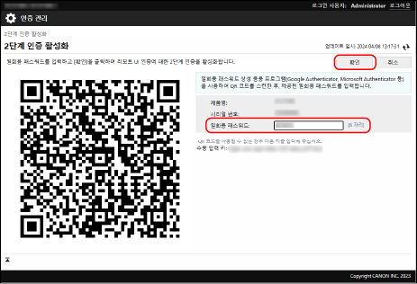 표시된 일회용 비밀번호를 모바일 장치의 일회용 비밀번호 생성 앱에 입력하고 [확인]을 클릭합니다.