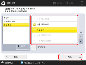 단축키로 등록할 설정 항목을 선택하고 [확인]을 누릅니다.