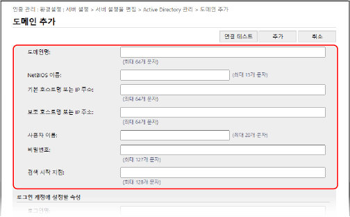 Active Directory 서버 인증이 실행될 때 사용자 정보를 검색할 위치(레벨)를 지정합니다. 검색 시작 위치를 지정하지 않으면 서버에 등록된 모든 사용자 정보가 검색됩니다.