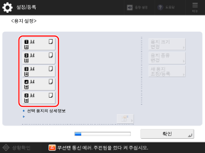 적재된 용지 크기가 [용지 설정] 화면에 표시되는지 확인합니다.